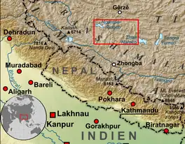 - ↑ Hedin, Sven (1922). Southern Tibet. Stockholm: Lithographic Institute of the General Staff of the Swedish Army. pp. vol. 9, part 5, p. 123, vol. 11, Map Sheet XIV, B5. Retrieved 2 September 2018.