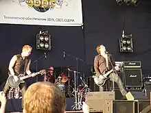 ![]() Lake of Tears at ProRock 2009 in Ukraine. From left to right: Fredrik Jordanius, Mikael Larsson, Johan Oudhuis and Daniel Brennare. | |
