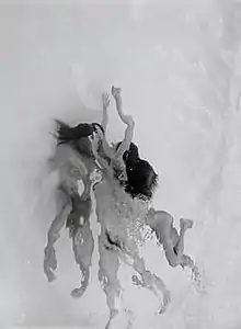 "Women and Water" is about the beauty and imperfection of the free body underwater. Many women feel they have been deformed by social influences, particularly in the West. In the water they are free to dissolve and re-appear as a part of nature both classical and expressive.[1]