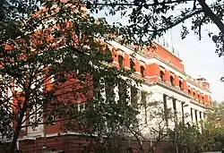 The road leading from the north-east corner of B.B.D. Bagh to Bowbazar was earlier known as ‘Avenue to the eastward’. It was also known as the Great Bungalo Road. In 1768, it was said to be the best street in Kolkata.[1] The modern police office was the residence of John Palmer, one of the merchant princes of Kolkata. Earlier to that it was said to be ‘an old ruin of a house, formerly the residence of some native.’ The house next to it was the Harmonic Tavern, the handsomest house in its day and pulled down long back.[1]
