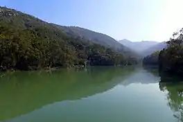 Lam Tei Reservoir (also known as Lo Fu Hang Reservoir or Lam Tei Irrigation Reservoir) is a funnel-shaped reservoir located at the back hill of Lingnan University in Fu Tei, Tuen Mun, Hong Kong with an area of 17,000 m2 and a water storage capacity of 116,000 m3.[1] It is located at the western edge of Tai Lam Country Park and less than one kilometre away from Hung Shui Hang Reservoir. Like Hung Shui Hang Reservoir, it is part of Tai Lam Chung Reservoir's further water supply plan and an irrigation reservoir. The water from the reservoir eventually flows through the Tuen Mun River and empties into the Castle Peak Bay. The reservoir can be accessed by Stage 2 of the Tuen Mun Trail.[2]
