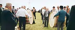 ![]() An Orange Order Lambeg drumming contest in Coagh, County Tyrone, in 2002. | |