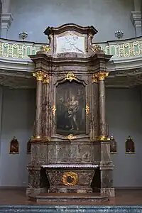 In 1749, upon the recommendation of Silvio Valenti Gonzaga, the Cardinal Secretary of State, he was pensioned to Charles Theodore, Elector of Bavaria, on whose behalf he painted altarpieces for the Jesuit Church in Mannheim. In 1756, he became head of the Düsseldorf Art Gallery.[2][3] Later, the Elector appointed him to oversee the creation of new galleries in Mannheim and Munich. In 1761, he was commissioned to paint ceilings in the library and ballrooms at Schloss Benrath.[4]