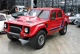 The Lamborghini LM002 is an off-road vehicle manufactured by Lamborghini between 1986 and 1993. The LM002 was an unusual departure for Lamborghini which, at the time, was primarily known for high-performance, hand-built, super/sports cars. The LM002 was not the first of its kind to be built by Lamborghini. Two prototype vehicles, the Cheetah and the LM001, paved the way for LM002. Both vehicles used rear-mounted American power plants and were intended for military use, but were not well received. With the idea of using a front mounted Countach V12 to power the LM001 came the next model, the "LM002", which was the first of the three to see actual production by Lamborghini. The LM002 is part of the Lamborghini Militaria series of vehicles.