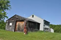 The built infrastructure of the farm consists of eleven buildings, located along either side of Lamson Road. The main house is on the east side, consisting of a multi-section structure whose core is a Cape style 1-1/2 story timber frame house built about 1770. Most of the outbuildings date to the early 20th century; the main cow barn, made by combining two older structures, has at least one section dating to the early 19th century. Located northeast of the farmstead are the foundational remains of a second farm property, which was purchased by the Lamsons in the early 20th century. Located near the junction of Lamson and Cross Streets is a stone foundation which once held a small district schoolhouse.[3]