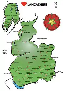 ![]() Lancashire Rose ![]() Lancashire county palatine shown within England | |