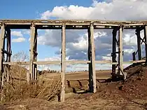 The Lancefield-Clarkefield section of the branch was closed on 13 August 1956,[2] when the wooden trestle bridge near Clarkefield required extensive maintenance and repairs. Though the railway right of way no longer exists, the former track bed can still be seen in many places, most notably the embankments and cuttings leading onto the decaying trestle bridge, which are visible from the road-side at the Bolinda bridge. The old Lancefield railway station fell into a state of disrepair after its closure but has since been refurbished as the Old Railway Station B & B and Carriage Cafe.