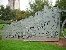 The Lanchester Car Monument (grid reference SP087883) is an open-air galvanized steel sculpture of the Stanhope Phaeton, or Lanchester motor car. It is in Bloomsbury Village Green, a piece of reclaimed land in the Heartlands (Nechells) area of Birmingham, England. It was designed by Tim Tolkien to commemorate the work of Frederick William Lanchester.