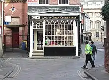 The Land of Green Ginger (grid reference TA099287) is a narrow street at the bottom of Whitefriargate in the old town area of Kingston upon Hull, England. There are various commercial and residential buildings along the street. The Land of Green Ginger contains what may be the world's smallest window, being a slit which was used by the gatekeeper of the George Hotel to look out for stagecoaches and customers.[1][2]