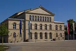 Landestheater Coburg (Coburg State Theatre) is a medium-sized three-division (opera / operetta, drama, ballet) theatre in Coburg, Bavaria, Germany. Located on Schlossplatz, a central square, the Neoclassical building has 550 seats. In 2008, the theatre employed 250 permanent staff and 100 part-time employees.