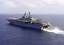 ![]() A US Navy LCAC maneuvers to enter the well deck of the amphibious assault ship USS Kearsarge | |