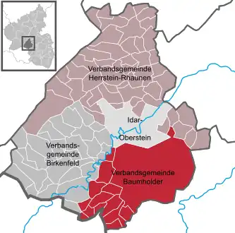 Birkenfeld (German pronunciation: [ˈbɪʁkŋ̍fɛlt]) is a district (Landkreis) in Rhineland-Palatinate, Germany. Its seat is the town of Birkenfeld. It is bounded by (from the south and clockwise) the districts of Sankt Wendel (Saarland), Trier-Saarburg, Bernkastel-Wittlich, Rhein-Hunsrück, Bad Kreuznach and Kusel.