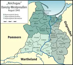 After the invasion of Poland in 1939, the territory of the Polish Corridor was annexed by Nazi Germany. On November 26, 1939, the Thorn district under its German name became part of Regierungsbezirk Bromberg in the newly formed Reichsgau Danzig-West Prussia. In the spring of 1945 the district was occupied by the Red Army and was restored to Poland. In the following years, the remaining German population was expelled.