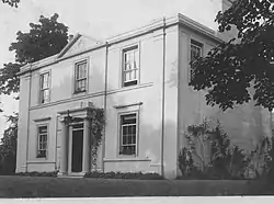 Built on a low hill, the site gave a clear view of the surrounding area and originally would have been a fortified building such as a tower house. The later mansion house is a Category B Listed Building.[3] The date of the completion of the mansion house, 1779, is carved onto a gable skew of a garden shed at the walled garden. The mansion house is three storeys high; the porch may be a later addition. The flanking wings are a Victorian addition.[3] The estate buildings included stables, part of which date from around 1635; Mains Farm; a dovecot and a walled garden of brick enhanced by rusticated, finial ball topped, stone piers.[4]