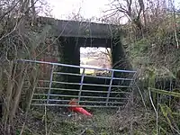 The Ardrossan and Johnstone Railway was originally a horse drawn waggonway which opened in 1831 between Ardrossan and Kilwinning.[33] It was built to the Scotch gauge of 4 ft 6 in (1,372 mm) and was worked by horses.[34] The 3-mile (4.8 km) long Doura branch was opened in 1834, left the main line near Stevenston and crossed under the Glasgow, Paisley, Kilmarnock and Ayr Railway to reach the Doura coal pit.[35][36] The 0.5-mile (0.80 km) Fergus Hill branch left the Doura branch just after the Lugton Water crossing to reach the Fergus Hill coal pit.[35][36]