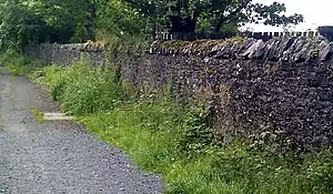 In the 1870s a new road was made to the stables and in 1888 the original house was unroofed and modified to become an ivy-clad garden feature. This old house had been much altered and improved over the years, serving latterly as a coachmans' quarters. It carried a marriage stone dated 1752 which commemorated the union of Robert Shedden and Margaret Simson, as well as a date stone of 1887 with the initials 'J.S.-D' in relief.[3] A summerhouse and dovecote were present[11] as was a walled garden. A rookery was established at the estate by tying small bundles of sticks in the forks of the trees upper branches.[3]