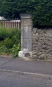A feature of the grounds was a copy of the principal pinnacle of the monument in the Skelmorlie Aisle at Largs which had been made by Mr Logan of Beith, a local sculptor. This had been moved here from Grangevale and stood on a wall that linked the house to the laundry; it bore the inscription Designed for Elizabeth by W. Dobie, 24th May 1845.[3]