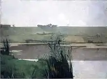 Close friends, Twachtman and Weir were members of The Society of American Artists, the Tile Club, and the Ten American Painters, and were instructors at the Art Students League of New York. Twachtman was best man at Weir's wedding, and named his son "Alden" after Weir's middle name.[2] A frequent guest at Weir's farm in Branchville, Connecticut, in the southeast corner of Ridgefield, Connecticut, Twachtman rented a home nearby in the summer of 1888 to work alongside Weir.[2] Of painting in the country Twachtman wrote Weir: "I feel more and more contented with the isolation of country life. To be isolated is a fine thing and we are then nearer to nature".[2]