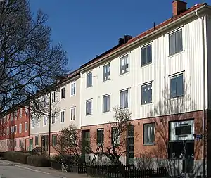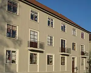 The landshövdingehus (Swedish: [ˈlândsˌhœvdɪŋɛˌhʉːs]; English: "governor house") is a type of building unique to Gothenburg, Sweden. City bylaws in the 19th century ruled that houses made of wood could be a maximum of two storeys high in order to protect against fires. However, one building association tried to circumvent the rule and submitted drawings for a building with the ground storey made of brick and two upper storeys made of wood. The city building council did not accept the application, but the county government overruled them and the landshövdingehus was born.[1]