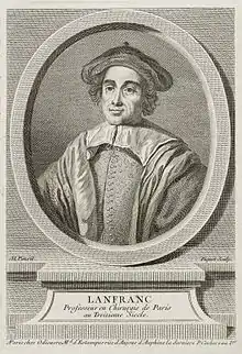 Born in mid 13th century Milan, Lanfranc was trained in surgery by Guglielmo da Saliceto in Bologna. To escape the Guelphs and Ghibellines feud, Lanfranc left[2] his practice in Milan and moved first to Lyon and then to Paris were he settled around 1295.[3] Lanfranc found employment as surgery lecturer at the Collège de St. Côme, which Louis IX of France had built to elevate the status of surgeons in the medical profession.[4] Surgeons trained at the college were no longer barber surgeons but were not admitted to the medical faculty.[5]