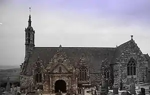 The Lannédern Parish close (Enclos paroissial) is located at Lannédern in the Châteaulin arrondissement within Brittany in north-western France. The parish close comprises the parish church of Saint-Edern dating to the 16th/17th century and the Saint Anne chapel, originally an ossuary. The church's south porch dates to 1662, the pulpit is 17th century as is the altar and altarpiece. The ossuary stands to the west of the church.[1][2] The church, calvary and ossuary are listed historical monuments since 1915.[3]