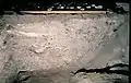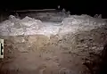 Formation process analysis characterizes Lapa do Santo's deposits as mainly anthropogenic and composed by repeated combustion activities, indicating an intense occupation of the same locality over time.[14] The macro stratigraphy of Lapa do Santo shows an intercalation of layers with diffuse to sharp boundaries that can be divided into three main categories, from the more to the less frequent: 1) tabular, grey, centimetric layers of powdery carbonate sediments, with common sand grains and frequent to common red clay aggregates and charcoal (20-40 %); 2) lenticular, red centimetric layers of indurated clay minerals with rare charcoal fragments; 3) lenticular, black, milimetric and centimetric layers, with high concentration of charcoal and microcharcoal.[14] The ash crystals are described as rhombohedric micro-crystalline calcite crystals (10-30 µm). The crystals develop after burning of the calcium oxalates that naturally appear in the plant cells at temperatures around 400-600 °C. Ash crystals, also described as pseudomorphs of calcium oxalate into calcite (POCC), are the diagnostic micromorphological trait of plant ashes. Ash crystals have an overall good preservation. The clay aggregates are always blocky, angular to sub-rounded. They appear in frequencies from 10 to 70% and show three distinct colors: red, orange and yellow. The differences could be related with the natural Fe2O3 content or to the anthropic modification of the clay aggregates (by human fires), as suggested by the dark red rims. Bioturbation of the sediments is indicated by channel and chamber voids, seen in most of the thin sections, passage features and large faunal channels. However, bioturbation was generally not intense since fragile components, such as tissue residues, laminations of fine plant tissue and articulated ashes show good integrity. The mixing of geogenic (clay aggregates) and anthropogenic sediments (ashes) seen in Lapa do Santo is a frequent characteristic in rockshelters of Lagoa Santa. Ashes from anthropic fires have been described in the sediments of Lapa das Boleiras[15] and Lapa Grande de Taquaraçu.