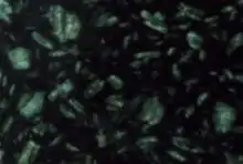 Lapis Lacedaemonius (Latin: stone from Lacedaemon), also known as Spartan basalt,[1] is a form of andesite or volcanic rock known today only from a single source in the village of Krokees on the Peloponnese in Greece.[2][3] In addition, ancient sources mention a quarry of lapis Lacedaemonius in Taygetus.[4] The stone has a dark green colour, speckled with elements shifting from yellow to light green.[3] Occasionally, the speckles have crystallised in a way that creates rosette-like patterns.[1] It is rated as having a hardness of six or higher on the Mohs scale of mineral hardness.[3] It appears in comparatively small blocks.[5] It is known in Italian as porfido verde antico and in German as Krokeischer Stein.