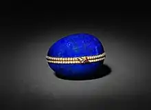 The Lapis Lazuli egg is a jewelled Fabergé egg, attributed to the House of Fabergé in St. Petersburg, Imperial Russia. Unlike many of the other Fabergé eggs, Lapis Lazuli was a private commission and isn't considered to be one of the imperial Easter eggs,[1] as it was never given to a Russian Tsarina.