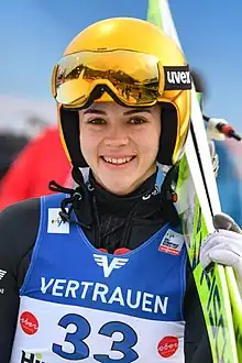 Lara Malsiner (born 14 April 2000) is an Italian ski jumper.[1] She has competed at World Cup level since the 2015/16 season, with her best individual result being third place in Hinzenbach on 9 February 2020. Her older sister is Manuela Malsiner and her younger sister is Jessica Malsiner, both of whom compete at World Cup level.