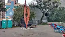 The square also hosts regular events such as the São Bento Book Fair, organized by the library, exhibitions like O Pequeno Príncipe Descobre o Mosteiro, which took place in August 2016, and the São Bento International Organ Festival, held annually in the Basilica since 1994.[10] Banks and stores at São Bento Station offer convenience to those passing through the square. Public toilets, a tennis table and a sculpture by the artist Caciporé Torres complete this space.[2]