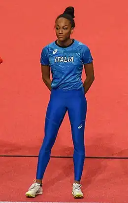 She is the daughter of former pole vaulter Gianni Iapichino and former long jumper Fiona May, who is a two time Olympic silver medalist.[4][5] In 2020 at under-20 level her personal best, 6.80 m, was the 5th best world performance of 2020[6] and 2nd all-time in Italy lists at senior level, 4th all time U20 world wide at first year of category.