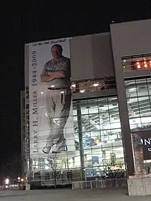 Larry H. Miller (April 26, 1944 – February 20, 2009) was an American businessman. He owned the National Basketball Association's (NBA) Utah Jazz and the Salt Lake Bees, a minor league baseball team. Miller and his companies (LHM Group) also owned more than 60 automotive dealerships throughout the western United States,[1] and a variety of other ventures, including Prestige Financial Services, Jordan Commons (a restaurant and entertainment complex), Megaplex Theatres, KJZZ-TV, Miller Motorsports Park, the advertising agency Saxton Horne, and the Delta Center. The Fanzz chain of sports apparel stores was also owned by LHM Group until its sale to Ames Watson Capital in 2018.[2]