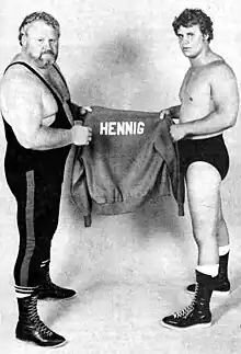 Before pursuing a career in professional wrestling, Hennig became the Minnesota State High School Heavyweight Champion from Robbinsdale, Minnesota, in 1954.[8] He was awarded a scholarship from the University of Minnesota to wrestle and play football but had to quit due to the priorities of family and raising children.[1][4][8] He had five children, including professional wrestler Curt Hennig.[2] Curt died on February 10, 2003, of an acute cocaine intoxication. After the highly publicized death of Chris Benoit, Hennig shared a few words with USA Today regarding premature deaths in professional wrestling.[9]