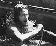 ![]() Young bathing in the steeplechase pool after winning the 50 km race at the 1972 Olympic Trials | |