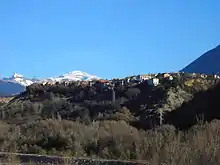 The massive rocky Peña Montañesa rise above the town.[2]