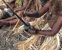 On arrival at the dock, warriors confronted the delegation until a sum of shell money was presented to the warriors as a sign of peace. Once this gift was received the village girls offered the delegation refreshments.