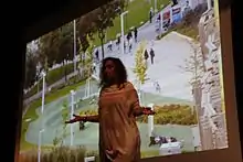 Laura Patricia Spinadel (7 July 1958 in Buenos Aires, Argentina) is an Austrian Argentine architect, urban planner, writer, educator and principal of the firm BUSarchitektur and of the company BOA büro für offensive aleatorik in Vienna.[1][2] Laura P. Spinadel has made an international name based on her Compact City [3] and Campus WU works, both considered pioneers of the holistic architecture ideology.[4] She is Doctor Honoris Causa at the Civic Parliament of the Humanity, Transacademy Universal Institute of Nations.[5]