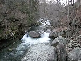 The Laurel-Snow State Natural Area got its name from two of the four waterfalls in the area, the 80-foot (24 m) Laurel Falls[2] and the 12-foot (3.7 m) Snow Falls.[3]