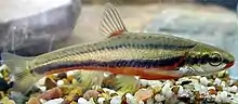 The laurel dace (Chrosomus saylori) is a species of freshwater minnow native to the U.S. state of Tennessee. It was first discovered in 1976.[4] A very rare species, it has only been found in localized populations in six small streams on the Walden Ridge portion of the Cumberland Plateau in Tennessee.[5] It is found in six streams: the Soddy, Horn, Cupp, Young's, Moccasin, and Bumbee Creeks, all of which drain into larger rivers that eventually feed the Tennessee River.[3] It is believed to be extirpated from Laurel Creek, the only other stream where it was known to occur.[6]