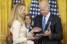 Laurene Powell Jobs (née Powell; born November 6, 1963)[1][2] is an American billionaire businesswoman and executive.[3] She is the widow of Steve Jobs, co-founder and former CEO of Apple Inc., and she manages the Steve Jobs Trust.[4][5] She is the founder and chair of Emerson Collective[3] and XQ Institute.[6] She is a major donor to Democratic Party politicians.[7][8][9]