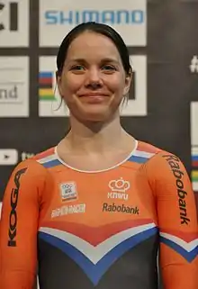 Laurine van Riessen (born 10 August 1987) is a long track speed skater and track cyclist, who currently rides for UCI Track Team BEAT Cycling.[2] She competed for the Netherlands at the 2010 Winter Olympics in Vancouver in the 500, 1000, and 1500 metres and won the bronze medal in the 1000 metres.[3] In 2015, she switched to track cycling and won a bronze medal in the team sprint at the 2015 UEC European Track Championships in Grenchen, Switzerland.
