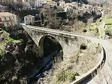 A first document referring to Lavina is of 1320 and mentions the parish church of Sant'Antonio Abate.[5] The "Statuti di Lavina" (Statutes of Lavina) were written in 1357, when the village was part of the Maro feud.[6] Those statutes regulated several mattere like the use of pastures and waters, municipal and judicial offices and several aspects of property transferts. In 1455 Lavina was given by the House of Ventimiglia to the Lascaris, along with the rest of the valley,[7] and so it passe under the control of the Contea di Tenda (Tende's county). Generally speaking Lavina followed the fate of Rezzo and of its valley, which was later absorbed by casa Savoia. The village was originally located in a place high on the river but it was destroyed by a landslide and had to be reconstructed in the present-day location.[8] Between the 18th and 19th century, during the period defined by some historians as the French Regime, the comune of Lavina was united with the neighbouring comune of Cenova.[3] Both the villages obtained their autonomy at the end of the First French Empire[8] and maintained it until 1928. In that year they were both absorbed by the comune of Rezzo, so that the whole Giara valley was unified from the administrative point of view.[7]