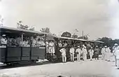 For excursions, three tarpaulin-covered wagons were used, for example during the inspection of the railway and cable car by Governor Aarnoud van Heemstra in July 1923.[9] A caravan style box was placed on an eight-wheeler flat car to provide a posh environment for refreshments.[15]