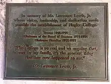 In 1968 administrators at Mount Ida College in Newton, Massachusetts, approached Lewis about buying the Hotel Ponce de Leon to open a women’s college in St. Augustine; Lewis agreed to the sale on the condition that the school be called Flagler College.[7] The first iteration of the college failed, but was reorganized with Lewis's assistance as a co-ed college in 1971. In 2018, Flagler College celebrated its 50th anniversary.[8]