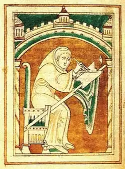 According to his own account, he continued his education at Durham, learning the trivium and quadrivium, with Virgil, Plato and Plotinus among his favourite authors.[6] If Lawrence's own testimony is to be believed, he was held in high acclaim in his early years for his poetry and fine singing.[7] In Lawrence's time as a teacher, he may have taught Ailred, later abbot of Rievaulx.[7] Lawrence took up a place in the bishop's court during the episcopate of Geoffrey Rufus (1133–1141).[7] Probably an episcopal chaplain, Lawrence was cantor and may have held the post of receiver general in Bishop Geoffrey's exchequer.[8]