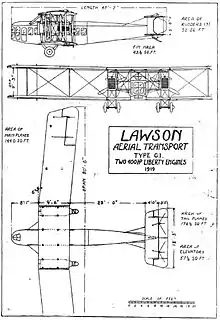 {{cite journal}}: Missing or empty|title=(help) - ↑ The Royal Aero Club of the UK (Sep 11, 1919). "The Lawson Aerial Transport". Flight- the Aircraft Engineer & Airship Weekly. 37. XI (559): 1220–1222.