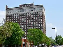 The LeClaire Hotel was a luxury hotel that hosted celebrities, including Jack Benny (in May 1950), and US presidents, including John F. Kennedy and Ronald Reagan. There was a ballroom on the fifteenth floor called the Top Hat that hosted tea dances that were accompanied by a big band orchestra.[5] The hotel closed in the mid-1980s and sat for ten years without an owner. The Alexander Company bought the property and conducted extensive renovations from 1995-1996 to convert the building into an apartment building. Monarch Investment and Management Group bought the property from Kimberly Clarke in 2015 and they plan to make all the units market-rate apartments as the affordable units become available.[6]