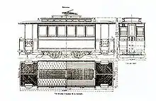 A fleet of twenty Thomson Houston-built 60 hp railcars, joined in 1900 by 10 open trailers,[26] served the line with departures every 10 minutes. It took them more than an hour to cover the entire route.[27]