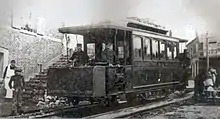 To avoid similar difficulties in the future, electrification was decided on the following April.[29] After laborious trials, operation resumed on 15 September, 1897[29] with an "electric and cable-free" tramway. Service was then provided by 4 Thomson Houston-built 100 hp, 50-seat motorcars, which took 4 minutes to cover this short section.[32] In fact, this was the hardest section of track in Europe for single-grip standard-gauge equipment.[33]