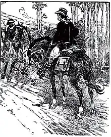 Raffles, who brought a revolver, goes to meet the threat, but retreats at the sound Ewbank's approach. Ewbank lets in the newcomer, who has been abused by bushrangers. He is the real Raffles who Ewbank was expecting. Together they realize that the first Raffles to arrive is an imposter, and probably one of the bushrangers. They search for him. Raffles silently closes the store-room door, just in time to not be seen. Raffles waits for them to move on upstairs, and flees on his horse to a hotel in Melbourne. Raffles's loss of innocence is marked by him shaving off his heavy moustache. He later returns the horse to the doctor.